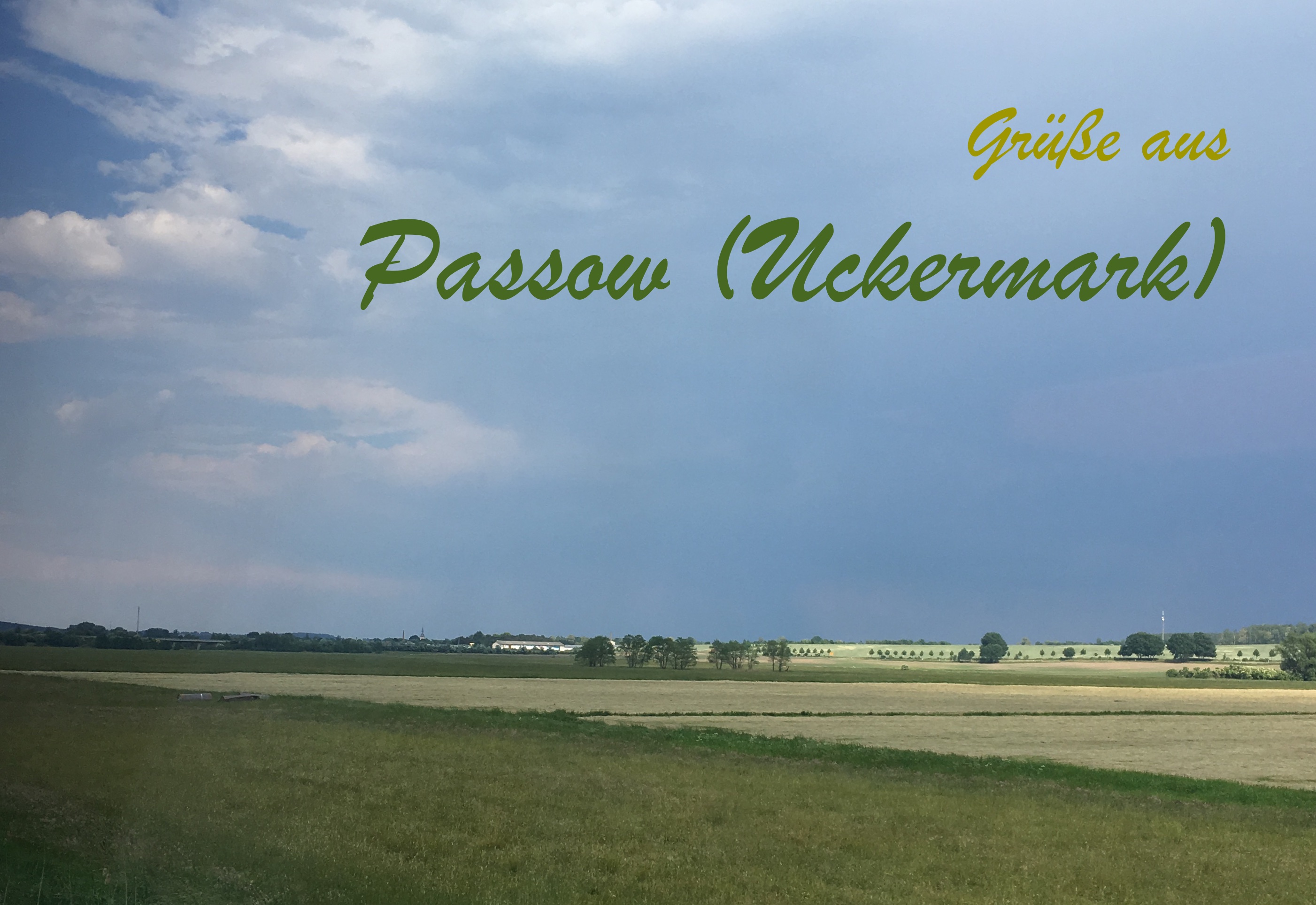 This postcard is from Passow (Uckermark), one of the one-horse towns where the train stops. This is so insignificant that the station platform is made of grass. This does not feel like a major route between European cities!