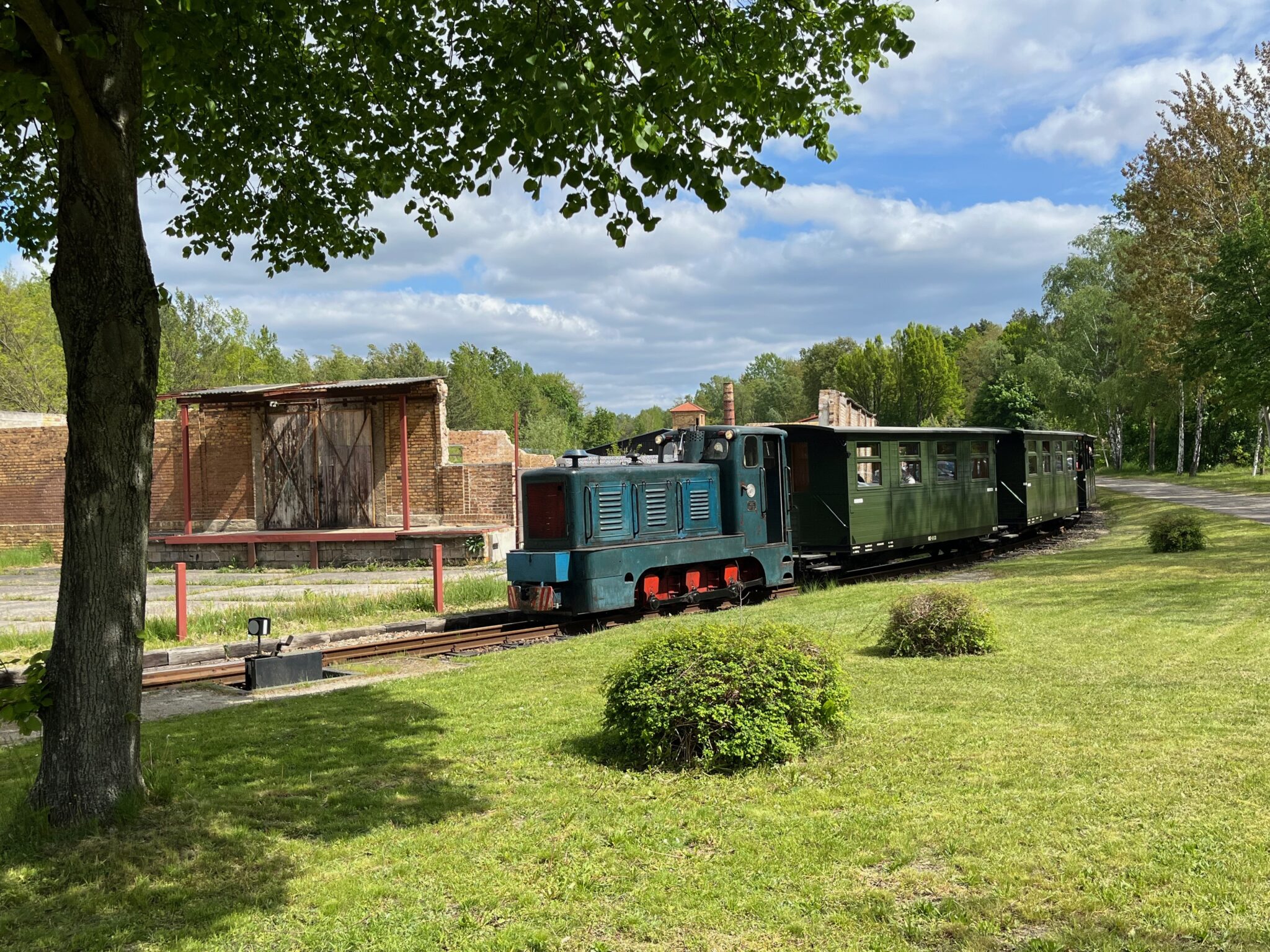 Hop on my bike and head towards Bad Muskau, via the Waldeisenbahn station - and there happened to be a cute little train: