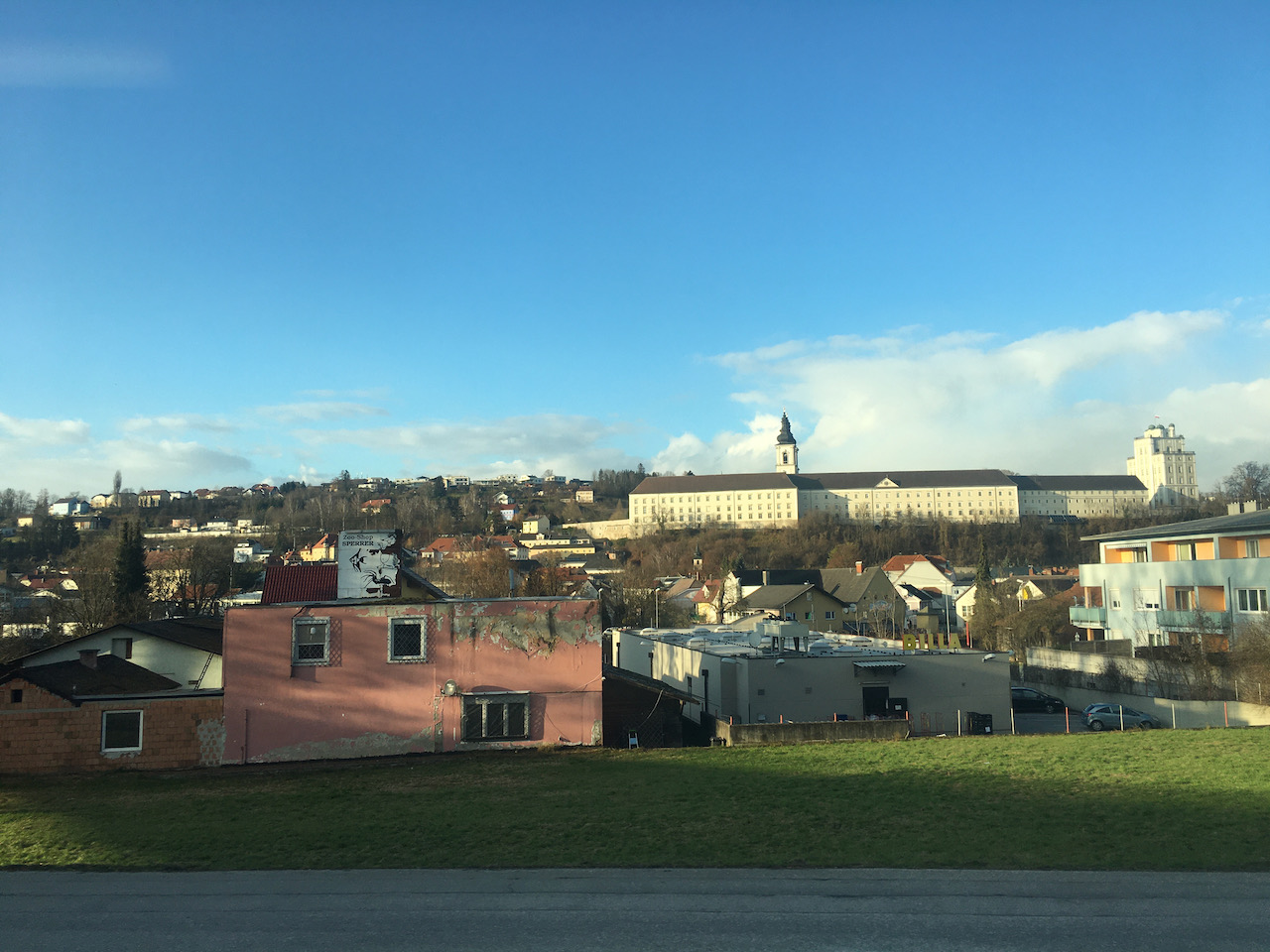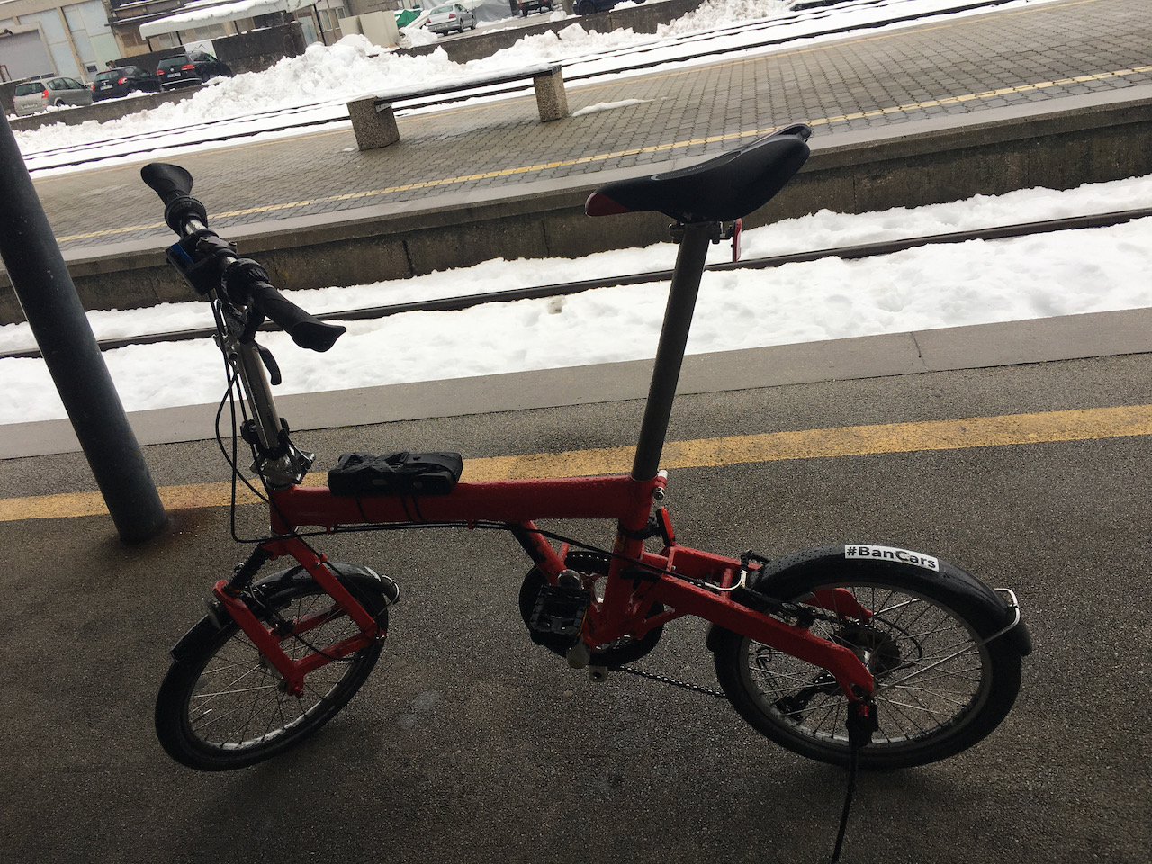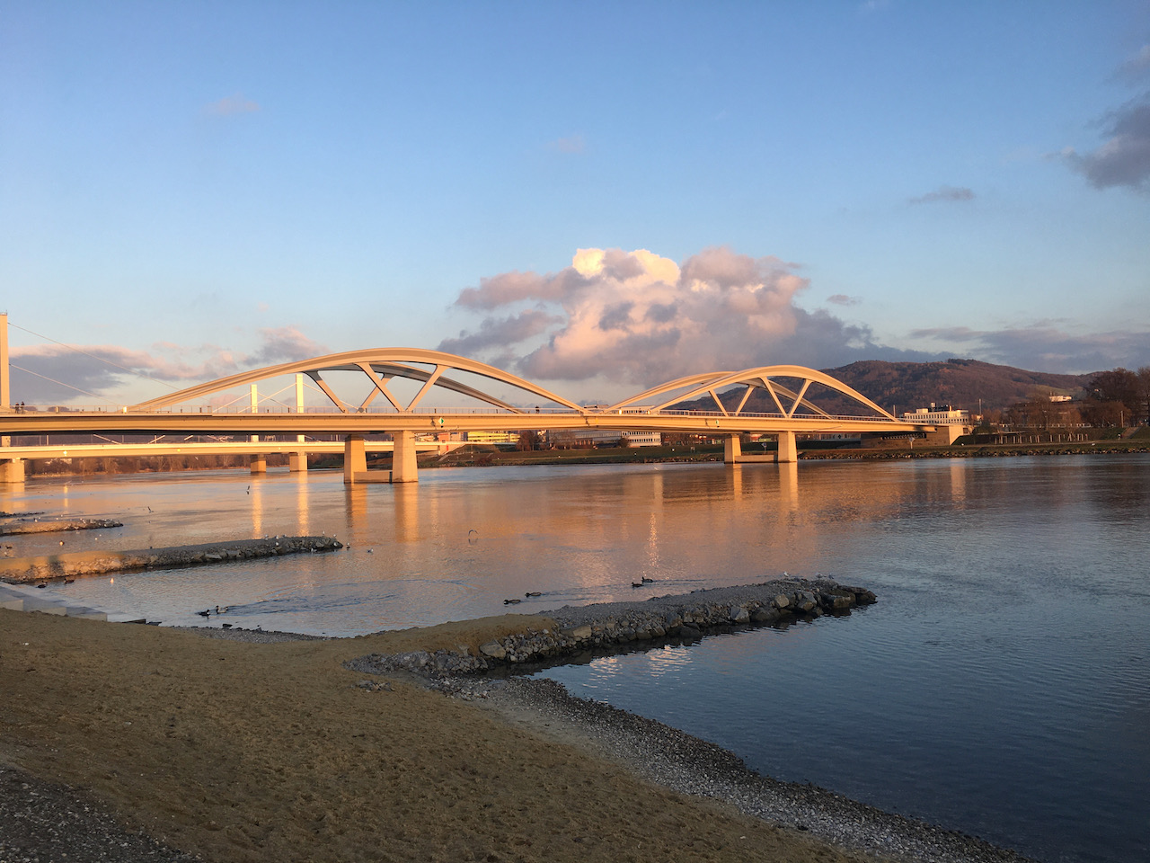 With a 90 minute stopover scheduled in Linz, there was time to unpack the Birdy and do a quick tour of the city. The cycle infrastructure strikes me as rather similar to that in Brussels (perhaps a strange comparison!) - lots of seemingly clever cycle paths, and routes the wrong way along one way streets, but cycling there still feels like you're in a very car dominated city. The last rays of winter sun at the Danube, and the elegant arches of the Neue Eisenbahnbrücke were worth the excursion.