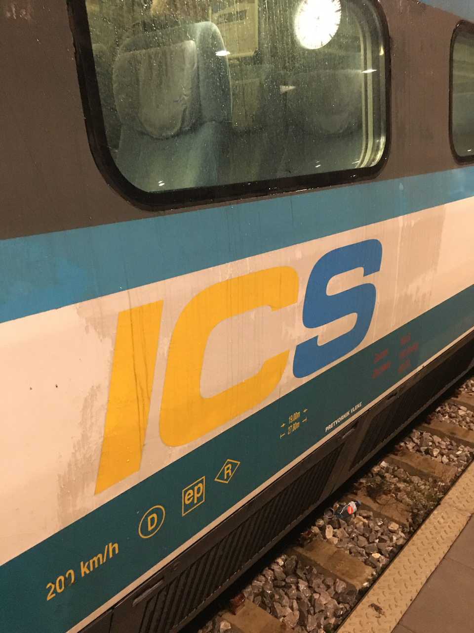 I've often travelled to Slovenia, but until now I have never taken SŽ's premium service - the ICS Pendolino. Honestly, it was not worth the wait. These trains are now 20 years old and are showing their age - everything feels worn and plasticky, and the air conditioning sounded like it had a hole in the pipes. Theoretically there is wifi but it did not work. The train departed a couple of minutes late, and arrived 10 minutes late - but the delay was not announced. There is a café point in the train, but this was closed - I presume due to Corona.