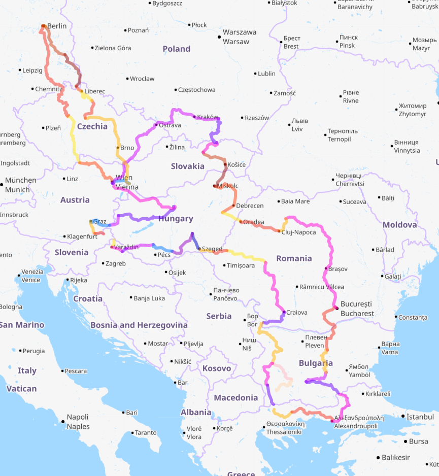 The rationale for including at least 2 hours in each political capital (and time in some of the border towns as well) is to allow the organisation of events to discuss the issues the route highlights - how well are plans for improvements advancing? What are the main barriers to progress? What could the EU do to assist? Precisely how these events can work in the middle of a pandemic remains to be seen, but attempting the trip in the summer ought to at least mean events in outdoor venues should be possible. Other people joining the trip for individual legs could also make sense.