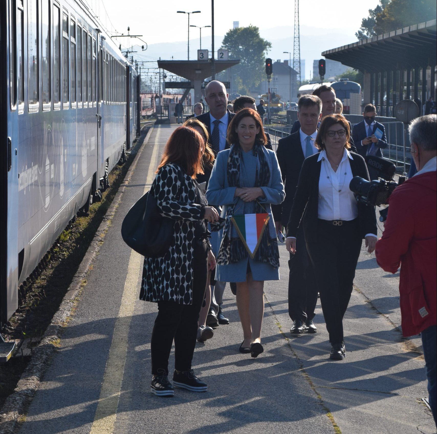 European Commissioner for Transport Adina Valean appeared at events where the express was stopping in Bucharest (tweeted here) and Ljubljana (my picture, below), but of course flew to both places rather than taking the train.