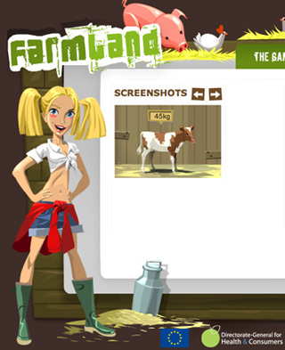 DG Heath & Consumer Protection have just launched a new website called Farmland The Game that aims to explain to kids how farm animals should be cared for. OK as an idea I suppose. Yet you take a look at the game and you see that it's technologically complicated and hence must have cost an absolute fortune to produce (€100K at least I would imagine)... And then you start to play the game and this scantily clad farm girl - Bérenice (she would have to have a French name, given the French get 20% of CAP money...) - accompanies you throughout. She's pictured in the screenshot here. Seriously do we really need to have a scantily clad farm girl to present a website intended for kids that's meant to deal with animal safety issues?