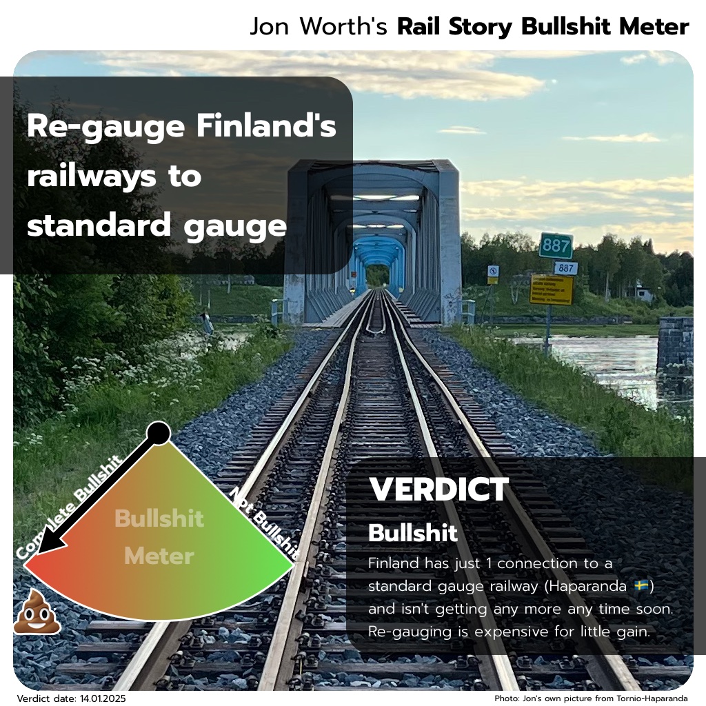 I have hence come up with a simple system to call out bullshit stories about railways - the Rail Story Bullshit Meter.