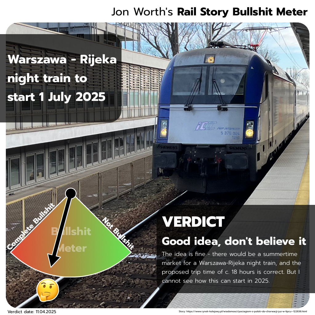 I am not going to try to do retrospective calling out of bullshit - I cannot go back to stories from 2022 that promised a 2024 launch and assess why it did not happen. And other than Channel Tunnel issues I am going to avoid UK rail issues. But beyond that do send me bullshit you have spotted that you would like me to assess!