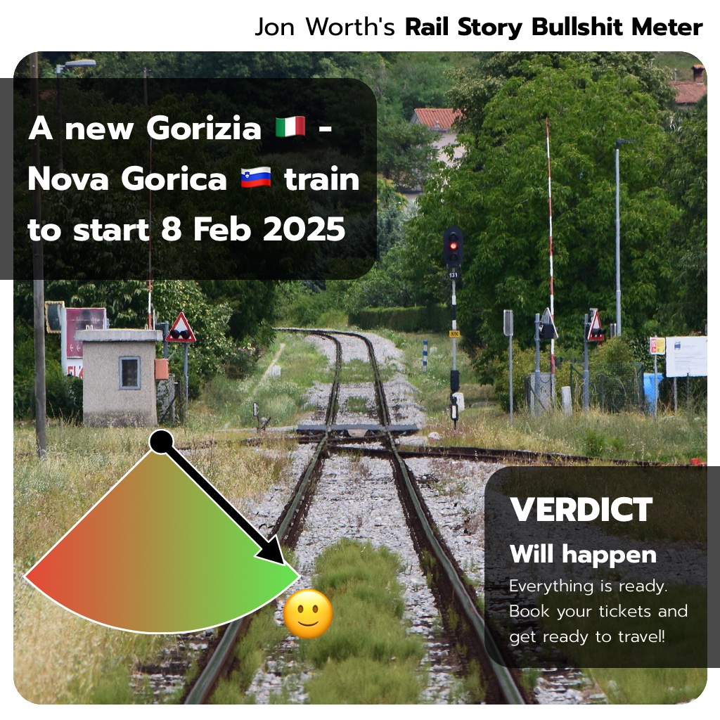 We have a bunch of news stories (like this one) with a concrete date - 8 February. It's 3km of track with no significant engineering headaches. Trains exist, an operator exists, Gorizia and Nova Gorica are European Capital of Culture. This one is going to happen.