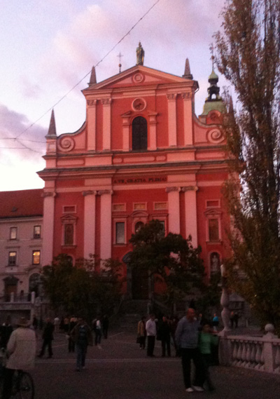 My hotel, just towards the station from Tromostovje, is calm and a little old fashioned, the staff slightly distanced and retro. Elderly couples sip local wines as cyclists pedal serenely along the street outside.