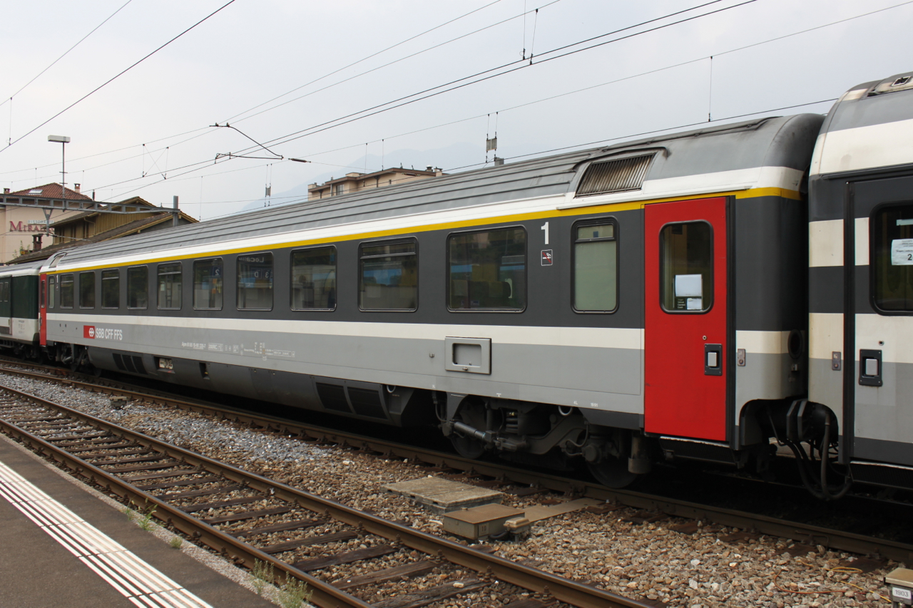 SBB CFF FFS Apm 61 85 10-90 220-7 at Locarno station in the consist of a northbound InterRegio.
