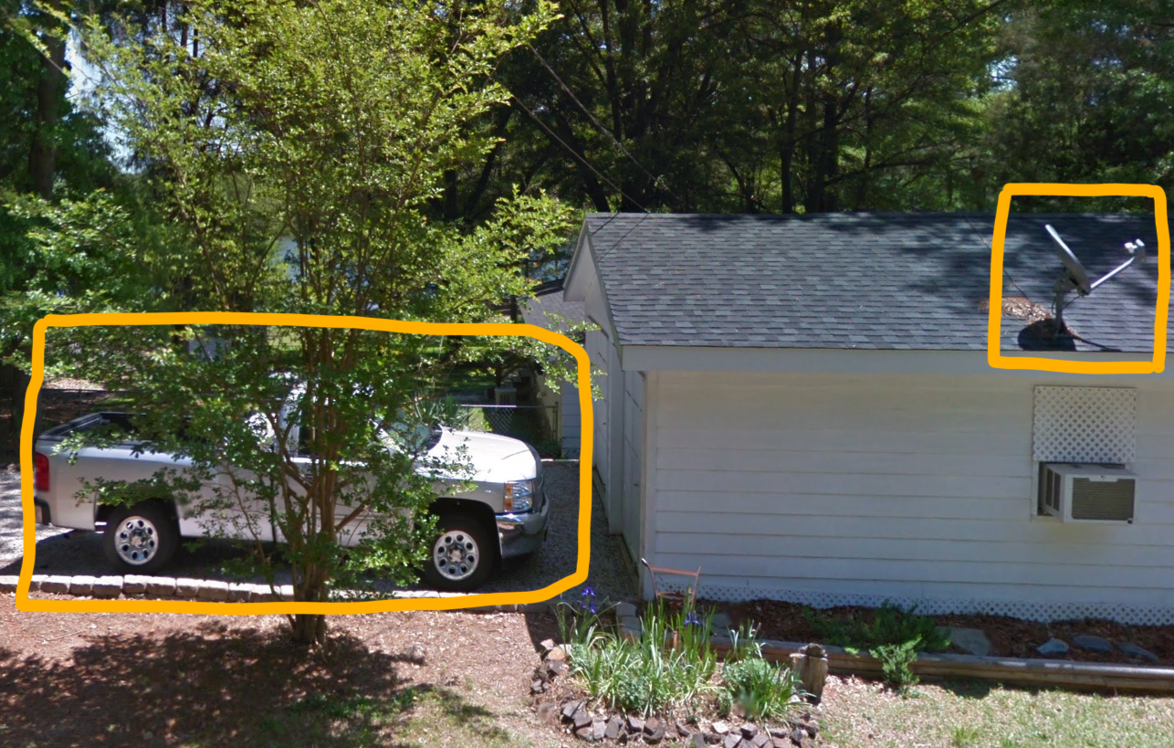 Panning around: that's a pretty massive truck. Leaning towards Trump here. Inclination of the satellite dish shows we're in the south, or south-ish (the further towards the equator you go, the more satellite dishes point upwards, due to satellites being in geostationary orbit).