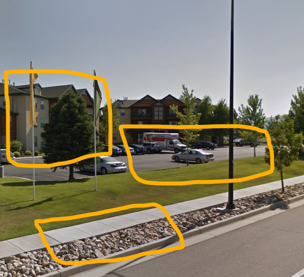Looks like a kind of holiday park or hotel? No trucks parked up here. And there's a sidewalk. It's well maintained.