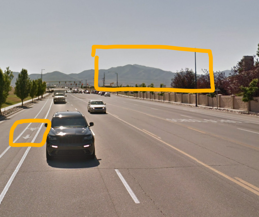 Hills the other way. Dry. And there is a cycle lane. Where are we here? Colorado? Utah?