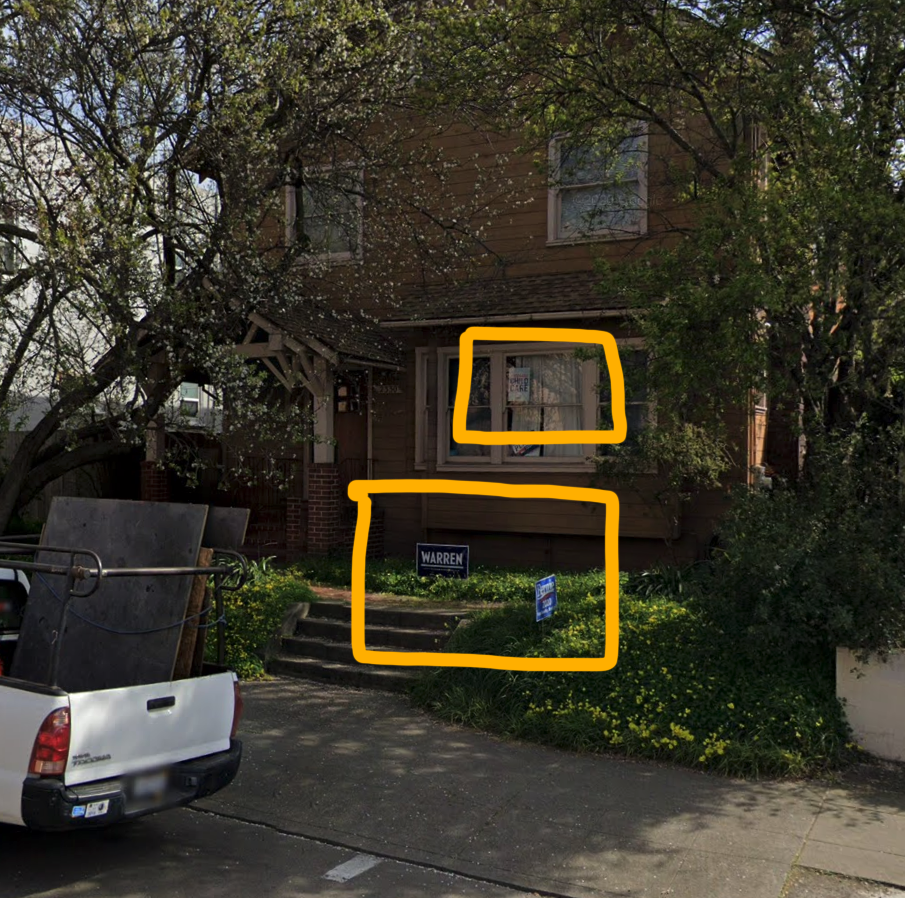 Front yards with gravel, not really gardens or grass. Something gives me the impression this is on the edge of a city, which together with the building, makes me lean Biden.