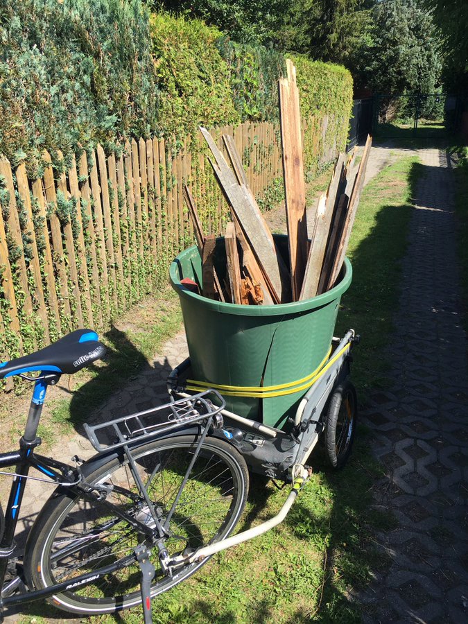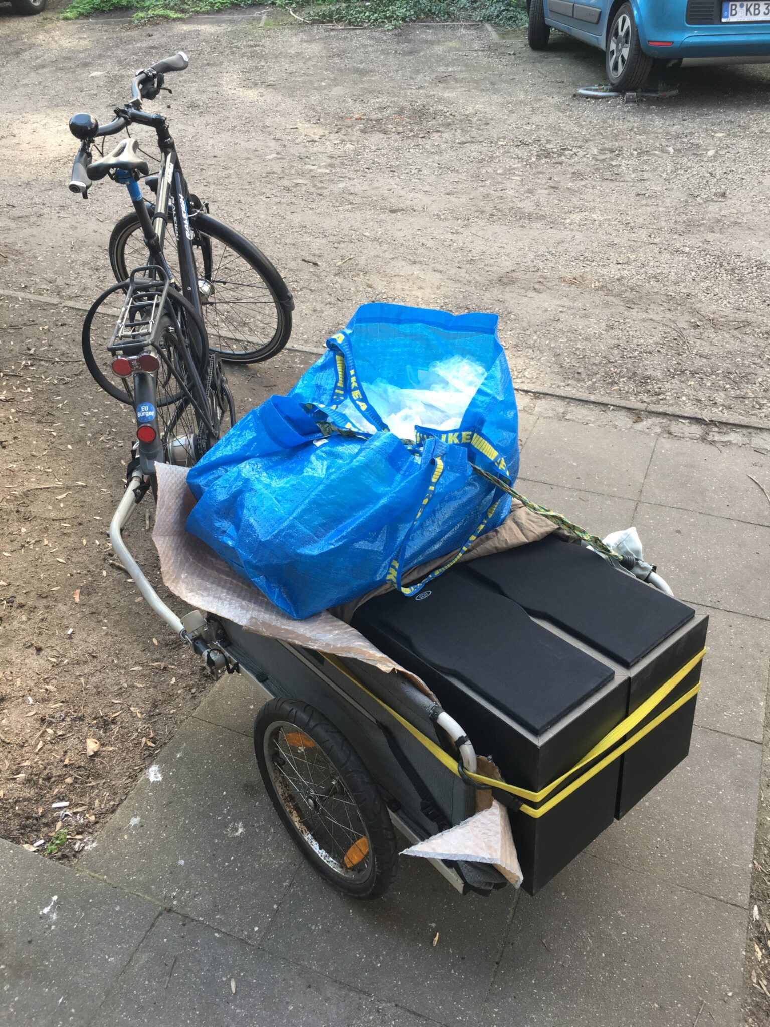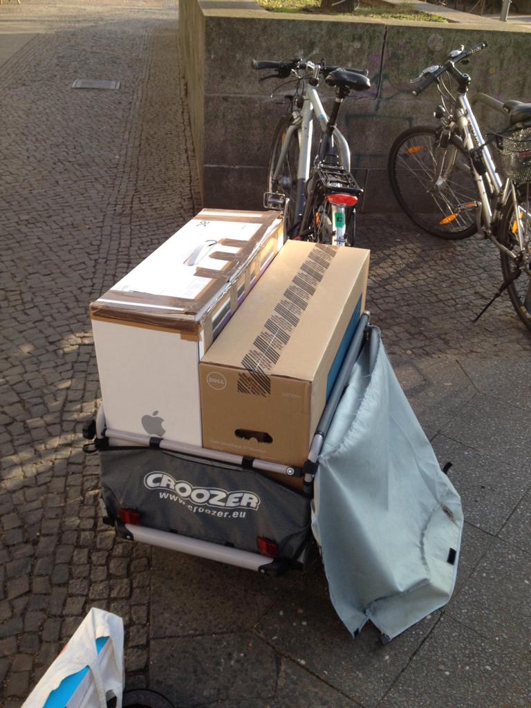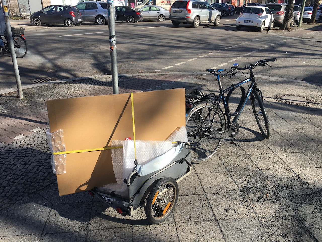 The important point however is that as I do own the trailer, I think of all sorts of things I could then use it for. Without it the whole shop4me project would not have worked for example. Or now living a fair distance from the nearest supermarket in my new flat in Berlin is no problem - I can shop more, but less often, because of the bike trailer.