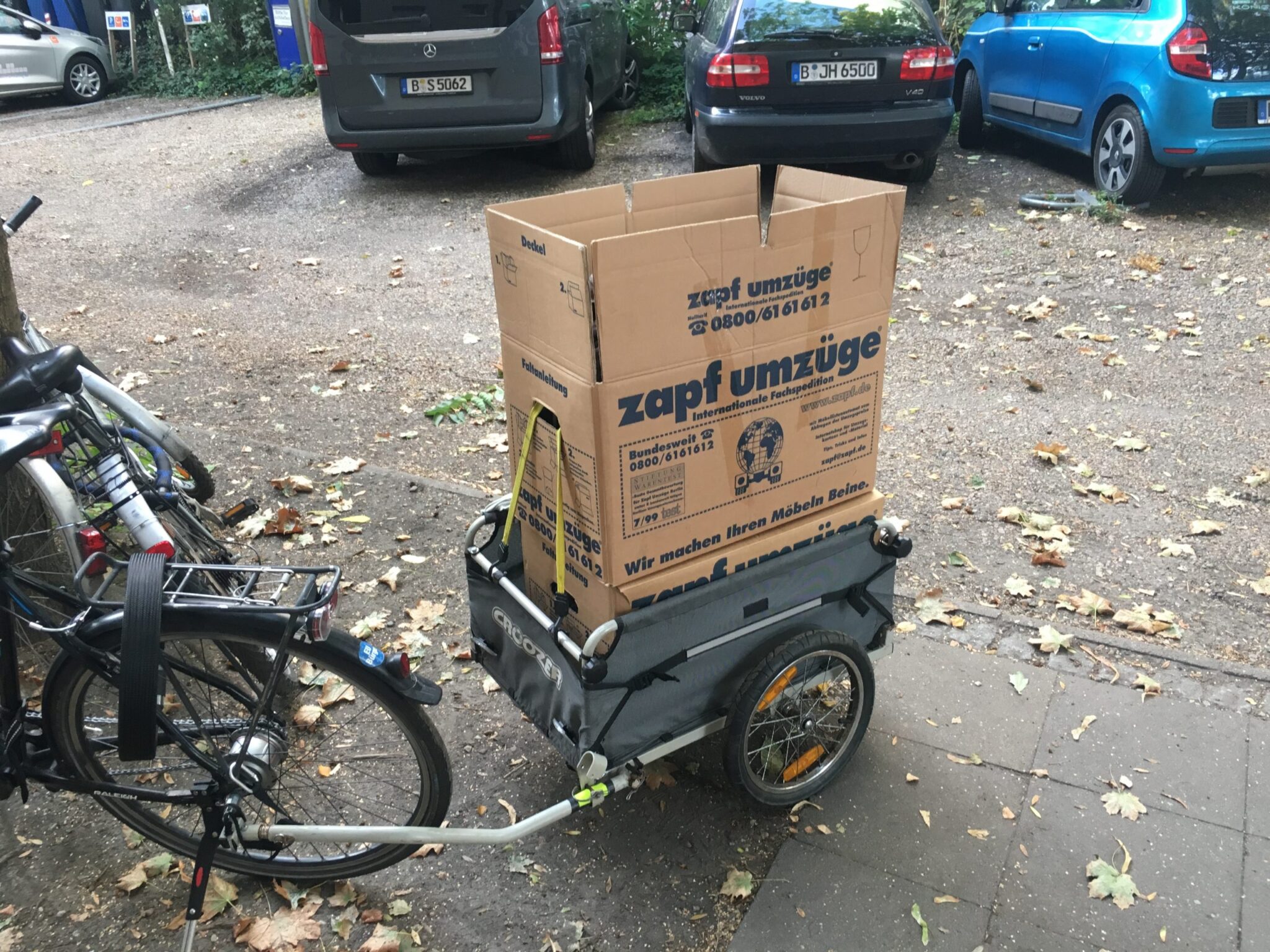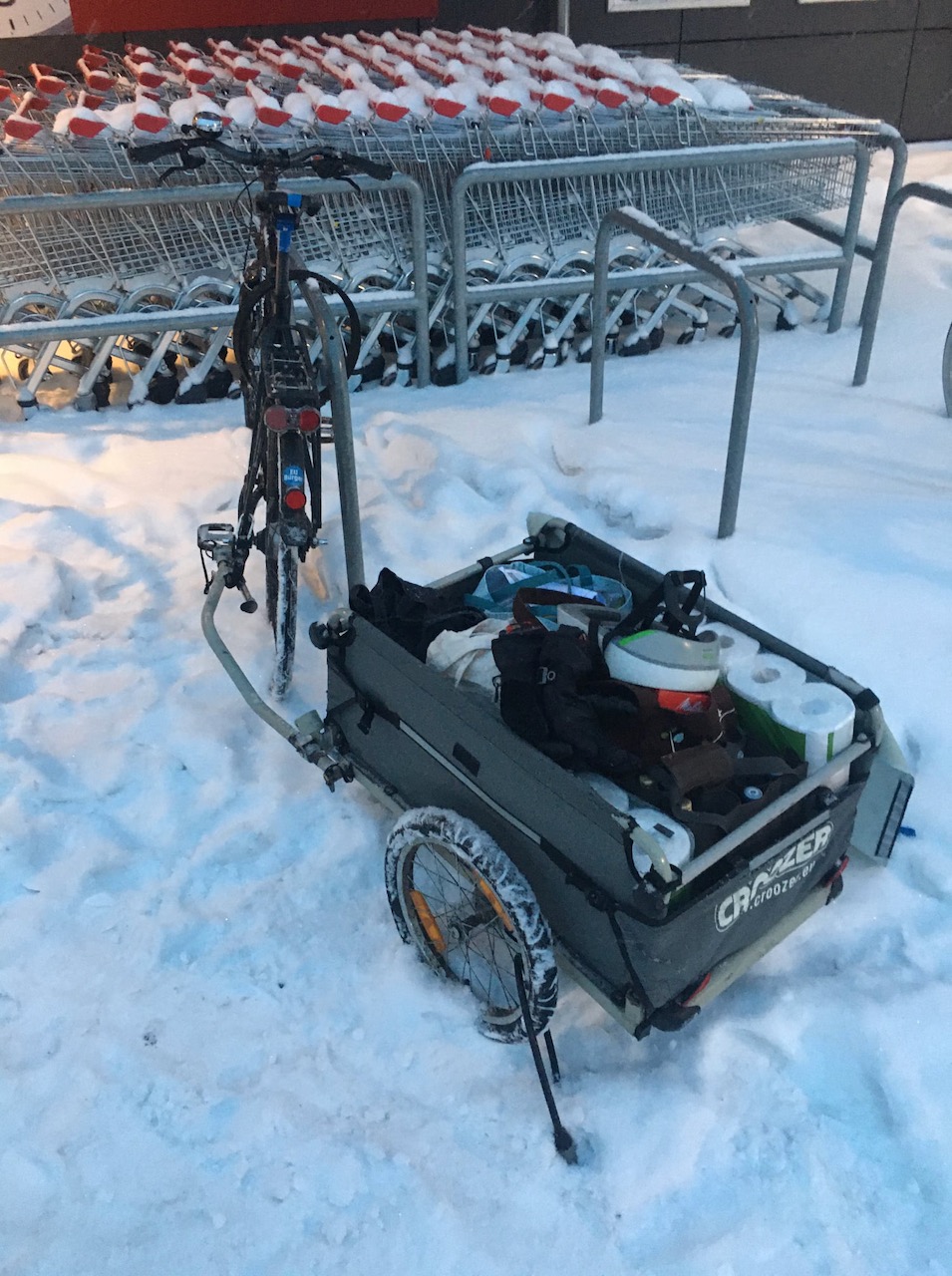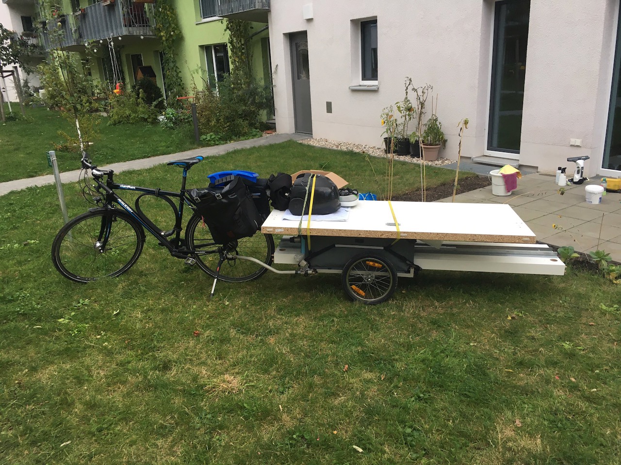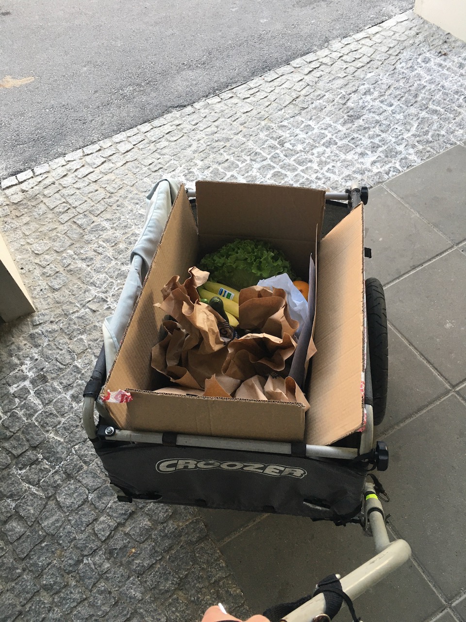 The important point however is that as I do own the trailer, I think of all sorts of things I could then use it for. Without it the whole shop4me project would not have worked for example. Or now living a fair distance from the nearest supermarket in my new flat in Berlin is no problem - I can shop more, but less often, because of the bike trailer.